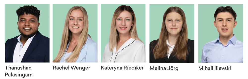 Zur Verstärkung unseres Teams durften wir im Jahr 2022 Herr Thanushan Palasingam (01.05.2022), Frau Rachel Wenger (01.06.2022), Frau Kateryna Riediker (09.06.2022) und Frau Melina Jörg (01.08.2022) willkommen heissen. Weiter begann Herr Mihail Ilievski am 1. August 2022 seine Berufslehre zum Kaufmann EFZ.