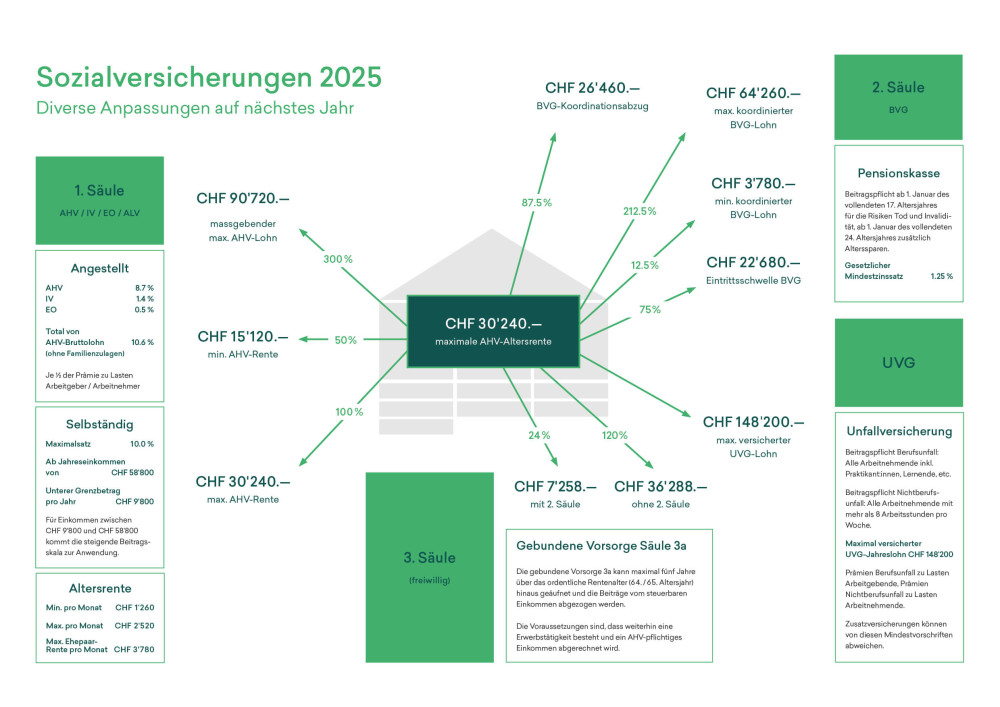 Am 6. November 2024 hat der Bundesrat die Anpassung der Verordnung über die steuerliche Abzugsberechtigung für Beiträge an anerkannte Vorsorgeformen (BVV 3) gutgeheissen und per 1. Januar 2025 in Kraft gesetzt.